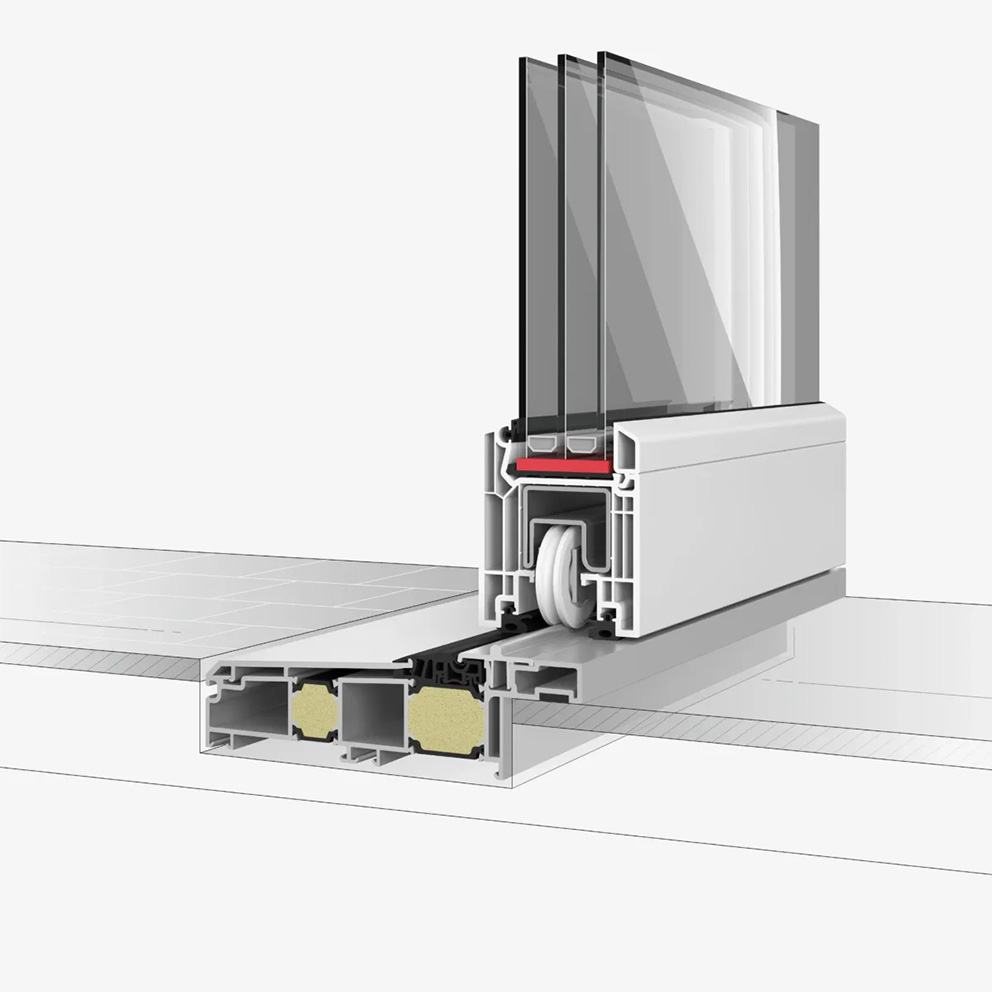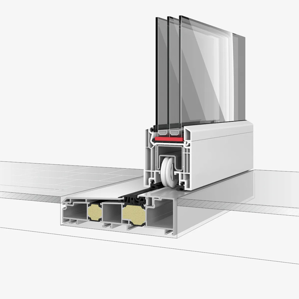Neben der hier gezeigten Niedrigschwelle, ist die QuinLine® 74 außerdem mit einer Standardschwelle oder der unten gezeigten Renovierungsschwelle verfügbar.
